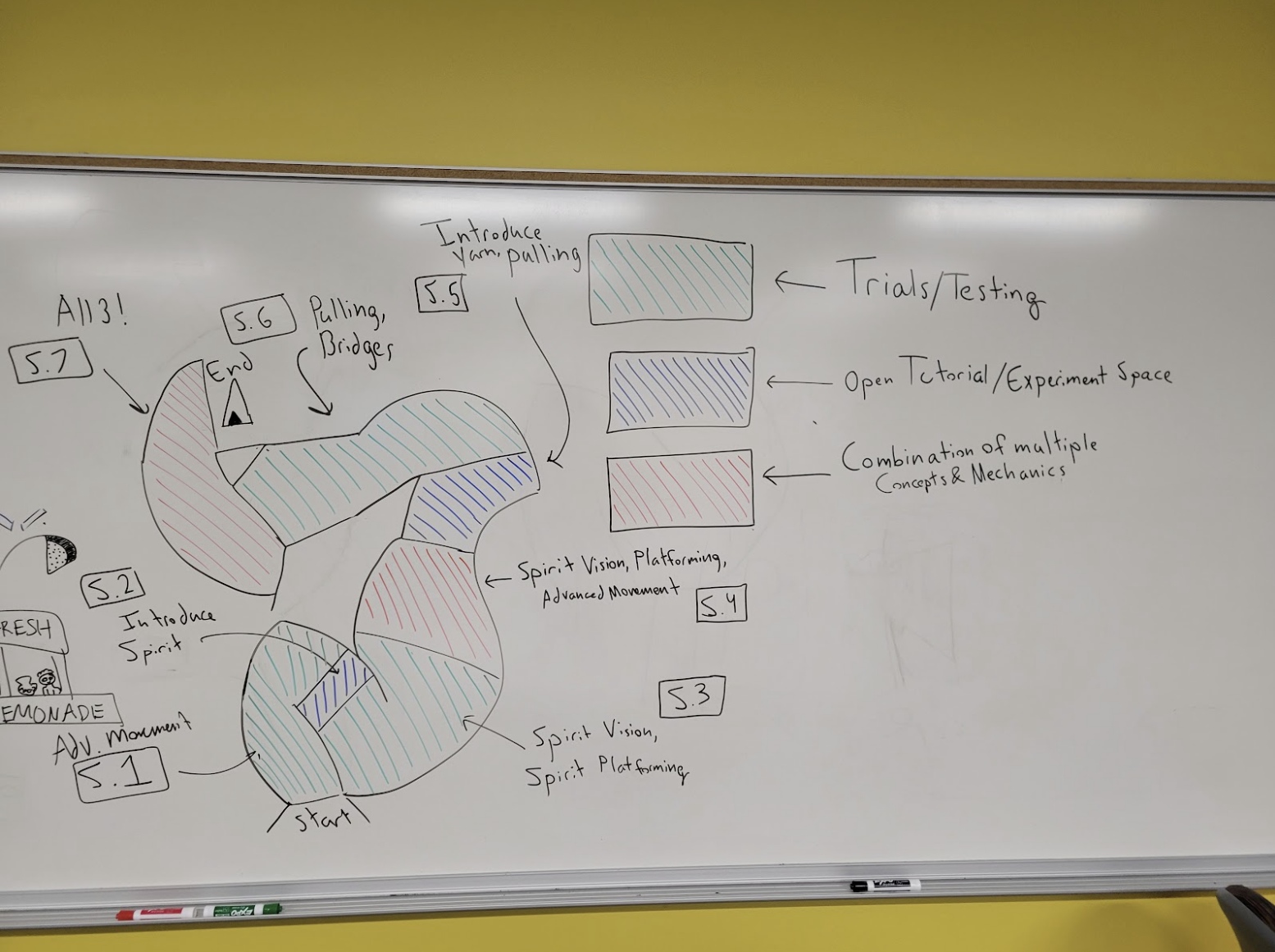 Within each level, we wanted individual sections that would introduce mechanics, utilize them, then integrate them with our other puzzle elements. This is our first sketch of our second level, the shore. we broke the shore up into individual sections that each introduced a new mechanic or idea.