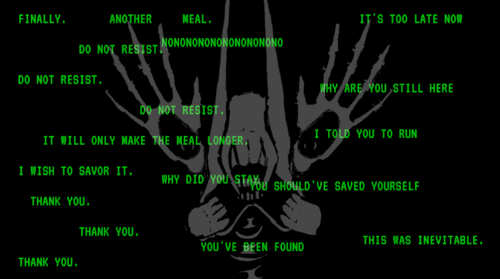 A large part of our game is horror, which gave us a lot of freedom to approach it however we wanted. We really liked the idea of crash screens, and used them to scare players with unnerving visuals.